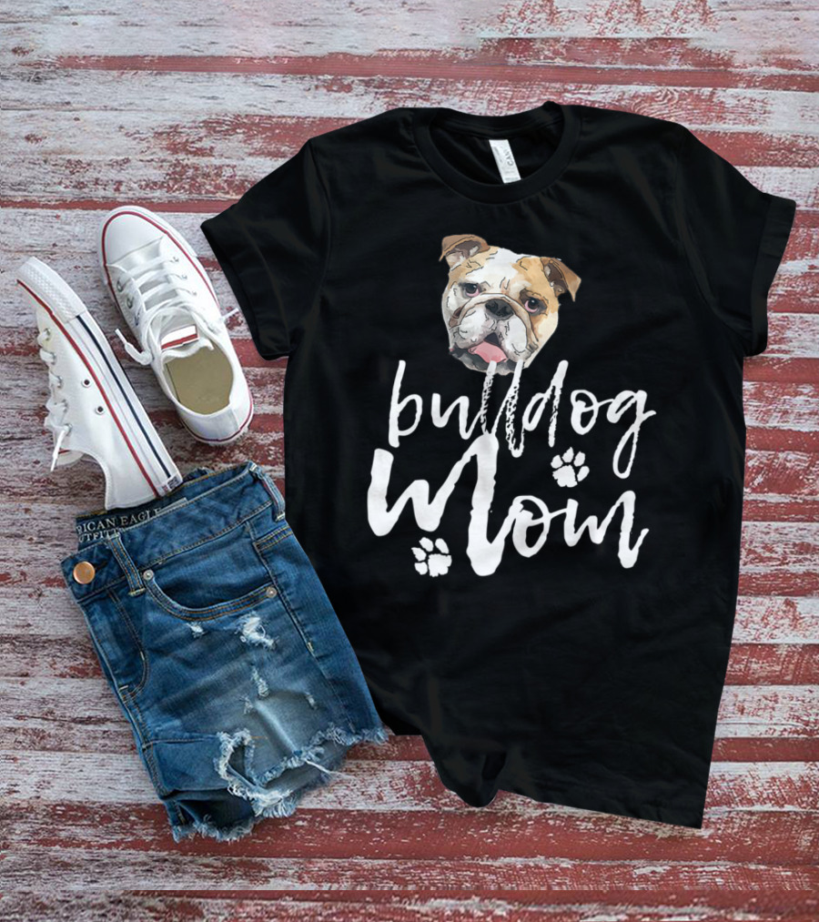 Bulldog Mom Adorable Dog Face With Paw Prints T-Shirt