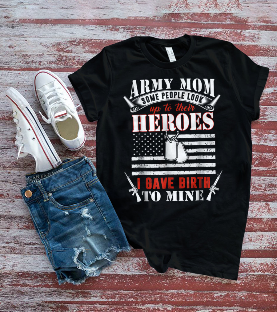 Army Mom Some People Look Up To Their Heroes I Gave Birth To Mine T-Shirt