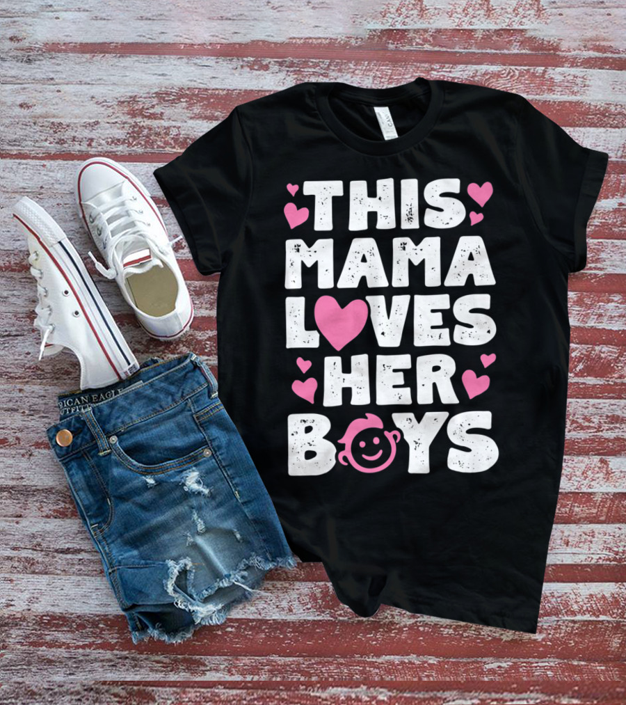 This Mama Loves Her Boys Heart Pink Face With Hearts T-Shirt