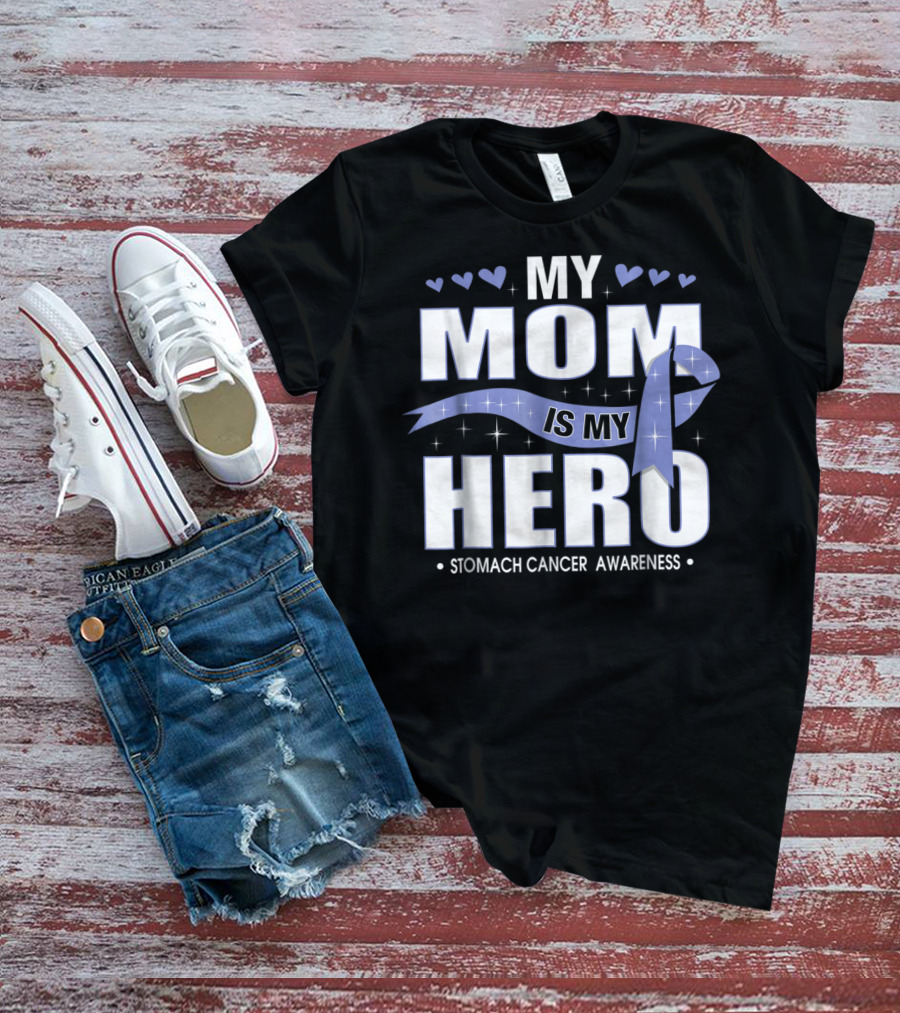 My Mom Is My Hero Stomach Cancer Awareness Ribbon Hearts T-Shirt
