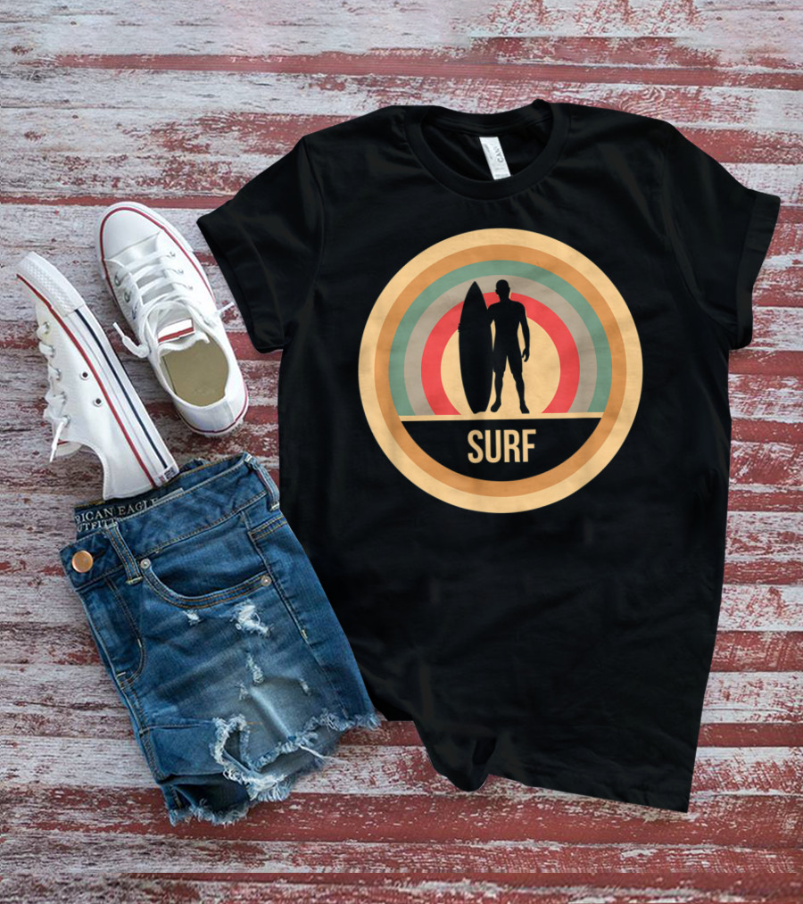 The Surf Retro Vintage Surfers Rainbow Circle Shirt offers a regular fit. Made from 100% ring-spun cotton that is pre-shrunk to help maintain size and shape after washing. Features reinforced construction details for durability. Available in U.S. standard sizes S-5XL to accommodate various body types.