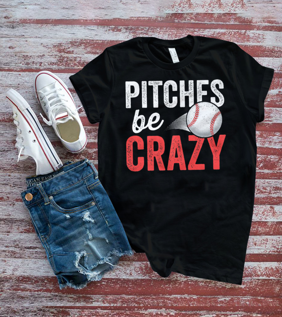 Pitches Be Crazy Baseball Funny Pun Adult87 T-Shirt