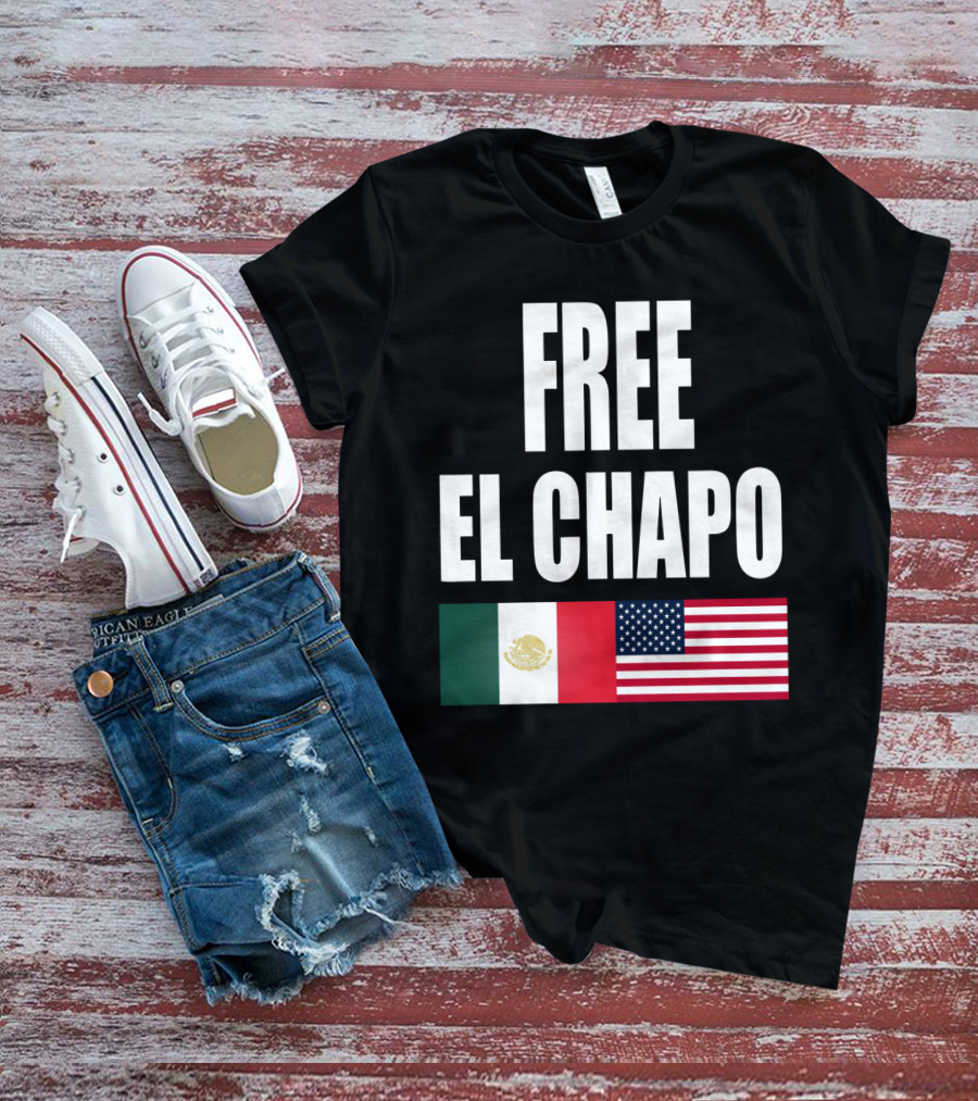 The Free El Chapo Mexico USA Flags Shirt offers a regular fit. Made from 100% ring-spun cotton that is pre-shrunk to help maintain size and shape after washing. Features reinforced construction details for durability. Available in U.S. standard sizes S-5XL to accommodate various body types.