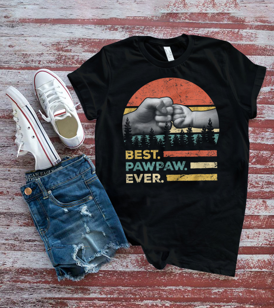Best Pawpaw Ever Vintage Retro Fist Bump Forest Sunburst T-Shirt