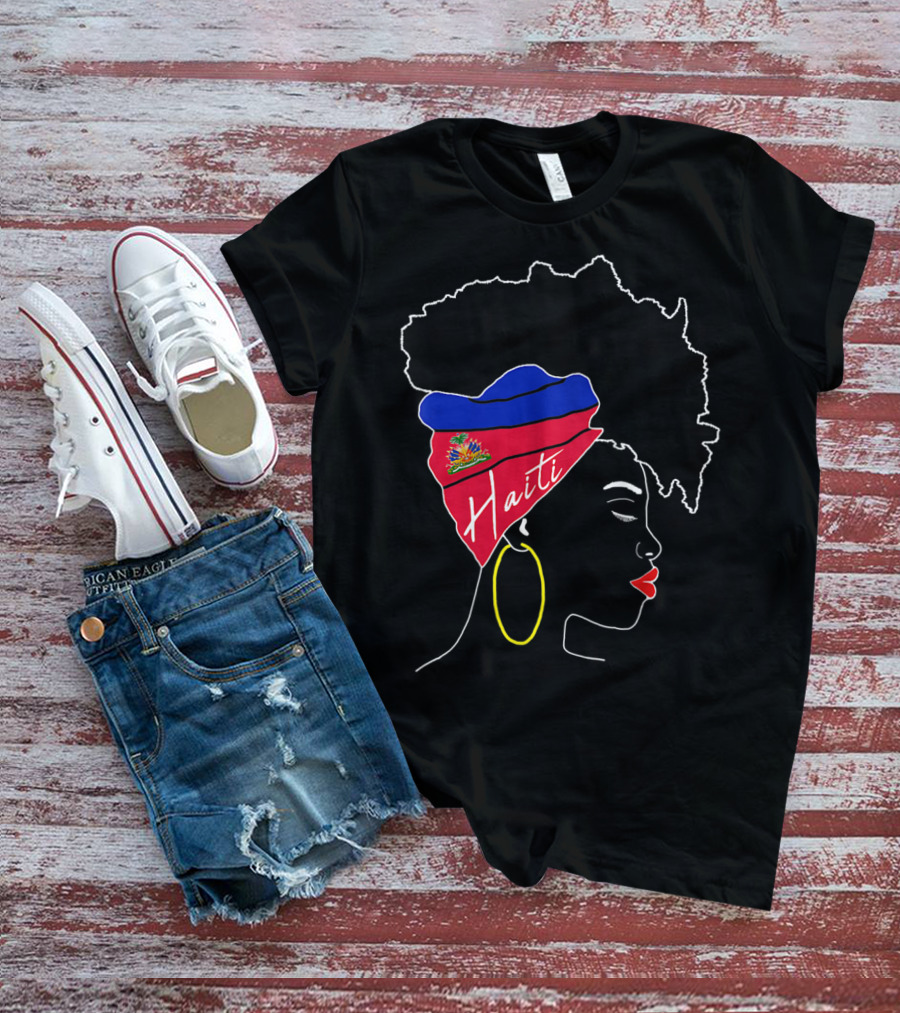 Haitian Girl With Haiti Flag Afro Headwrap Profile T-Shirt
