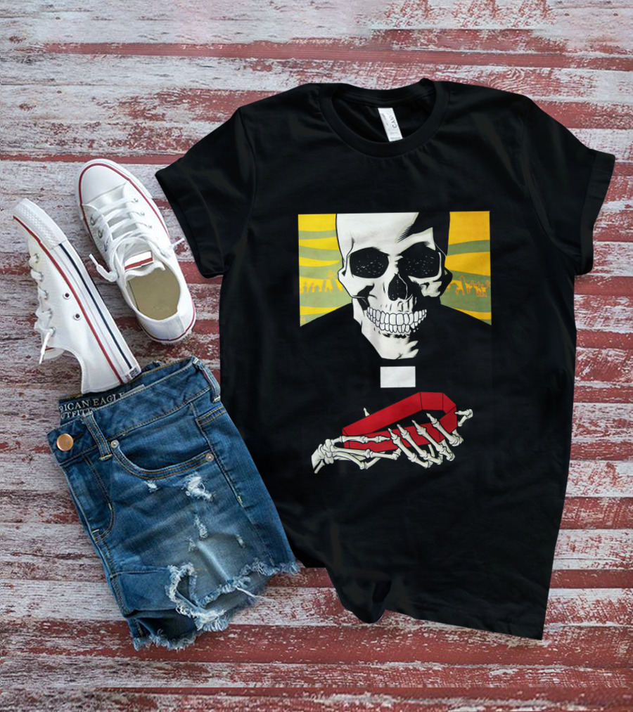Bold Skeleton With Red Coffin On Striped Yellow T-Shirt