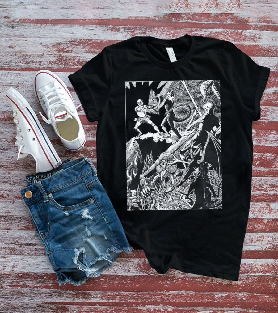 PALADIN IN HELL Classic Dungeon Adventure Battle Scene With Demons And Warriors T-Shirt