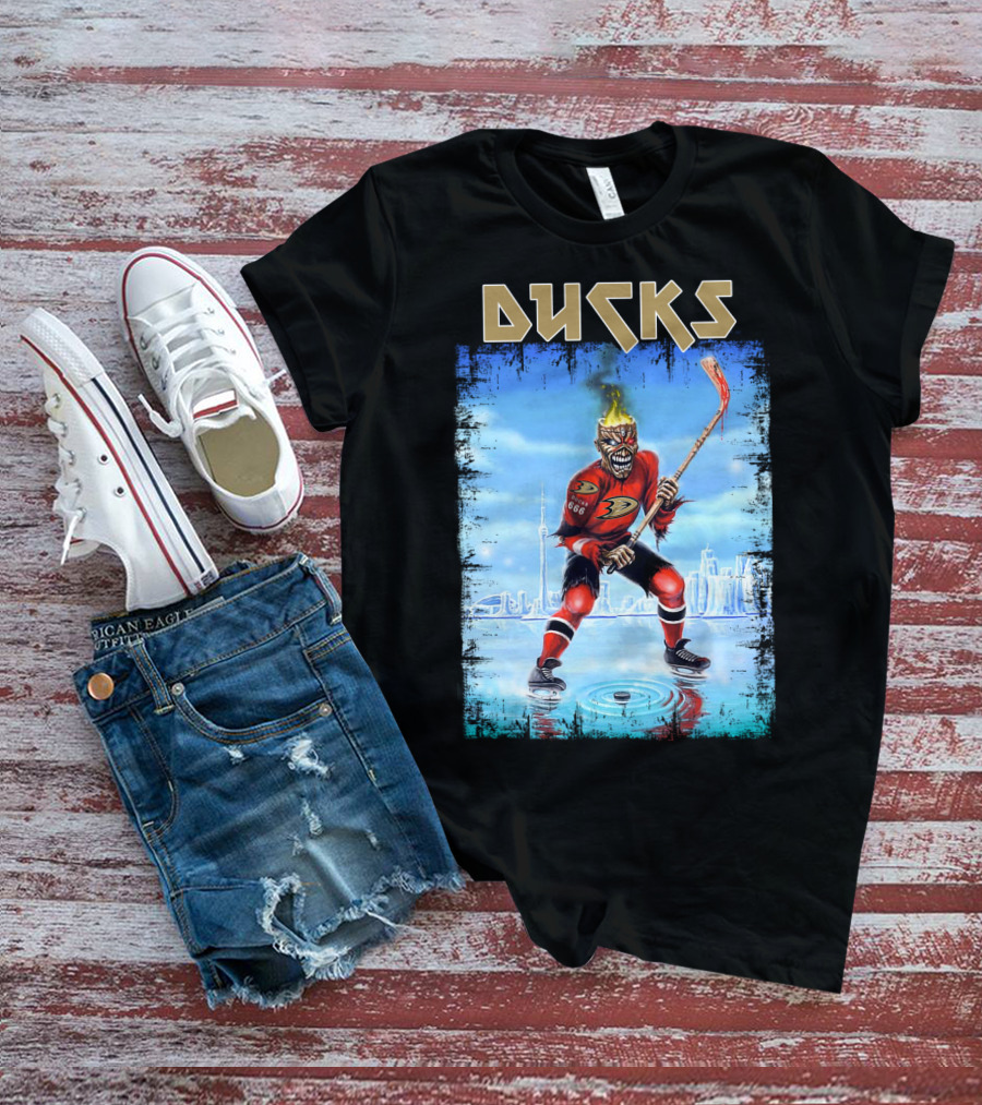 Ducks Hockey Player With Skeleton Face And Flaming Hair In Red Jersey T-Shirt