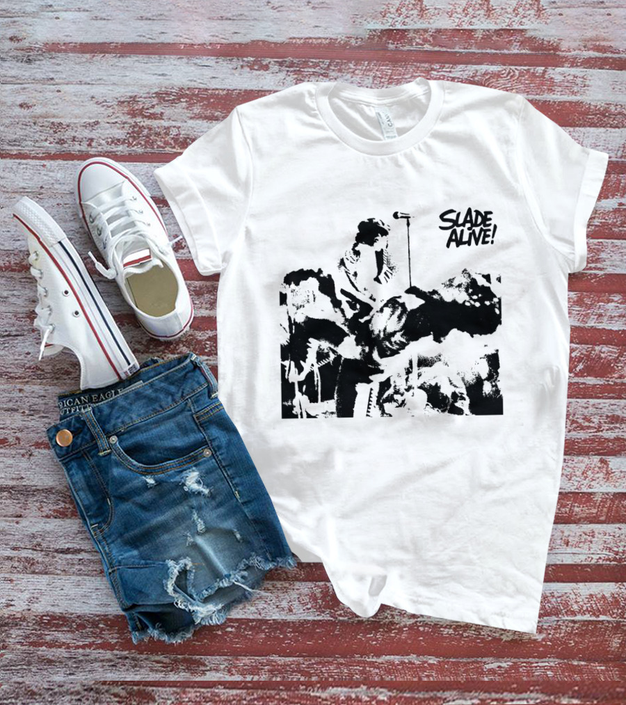 The Slade Alive! Retro Concert Photo Black And White Shirt offers a regular fit. Made from 100% ring-spun cotton that is pre-shrunk to help maintain size and shape after washing. Features reinforced construction details for durability. Available in U.S. standard sizes S-5XL to accommodate various body types.