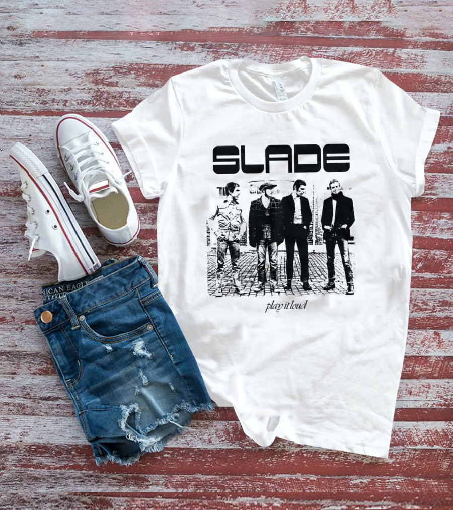 The Slade Play It Loud Band Members Black And White Group Photo Shirt offers a regular fit. Made from 100% ring-spun cotton that is pre-shrunk to help maintain size and shape after washing. Features reinforced construction details for durability. Available in U.S. standard sizes S-5XL to accommodate various body types.