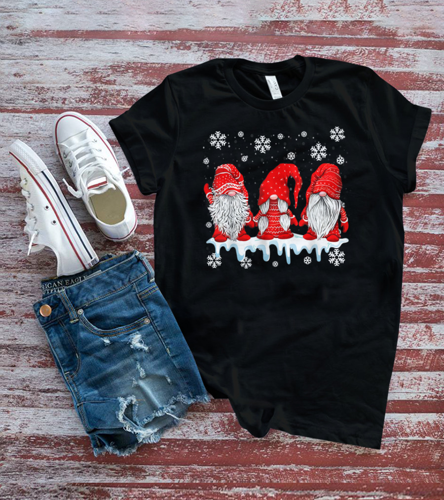 Three Festive Red Gnomes With Snowflakes T-Shirt