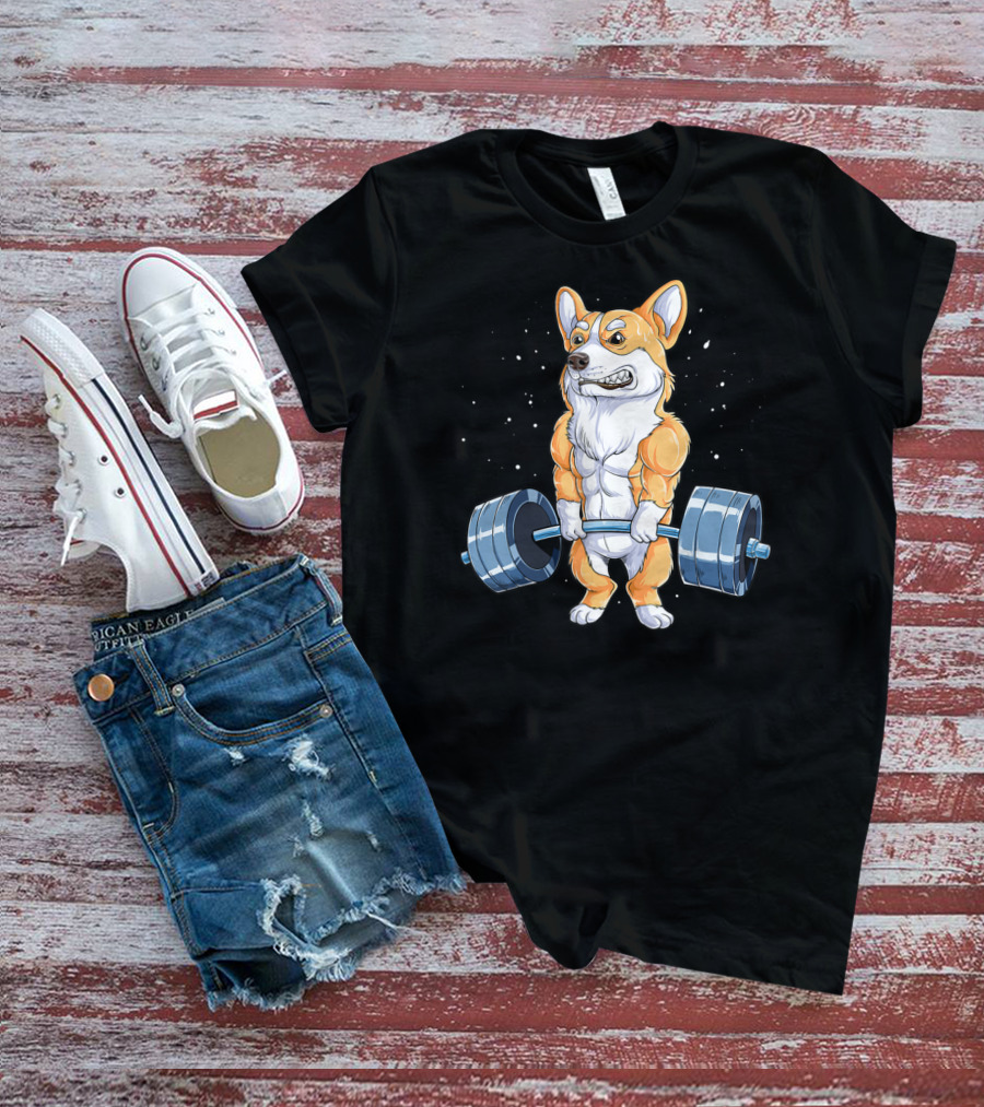 Corgi Weightlifting Deadlift Fitness Muscle Dog Lifting Barbell T-Shirt