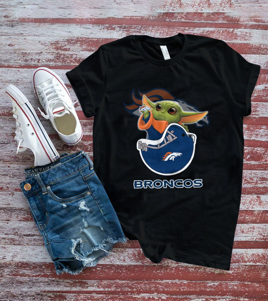 Yoda Denver Broncos Baby Yoda Holding Helmet T-Shirt