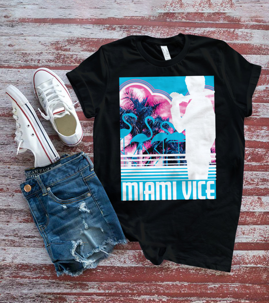 Miami Vice Neon Flamingo Silhouette Tropical T-Shirt