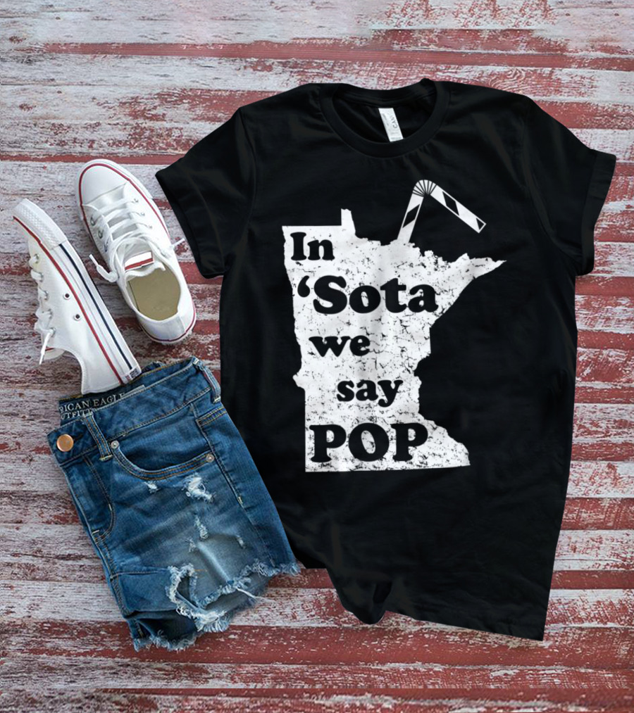In Minnesota 'Sota We Say Pop With State Outline And Straw T-Shirt
