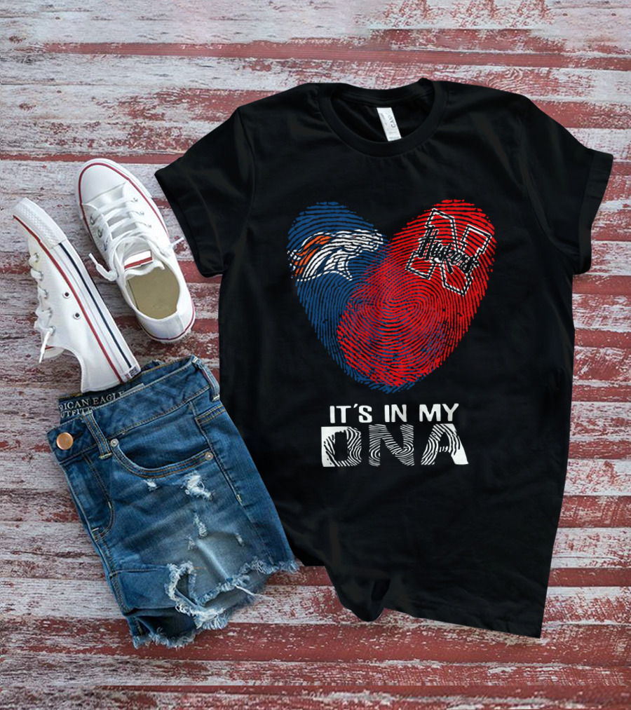 Broncos Huskers It's In My DNA Fingerprint Heart T-Shirt