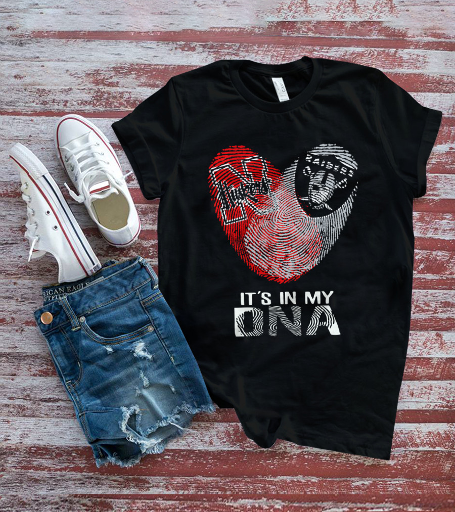 Raiders Huskers Fingerprint Heart It's In My DNA T-Shirt
