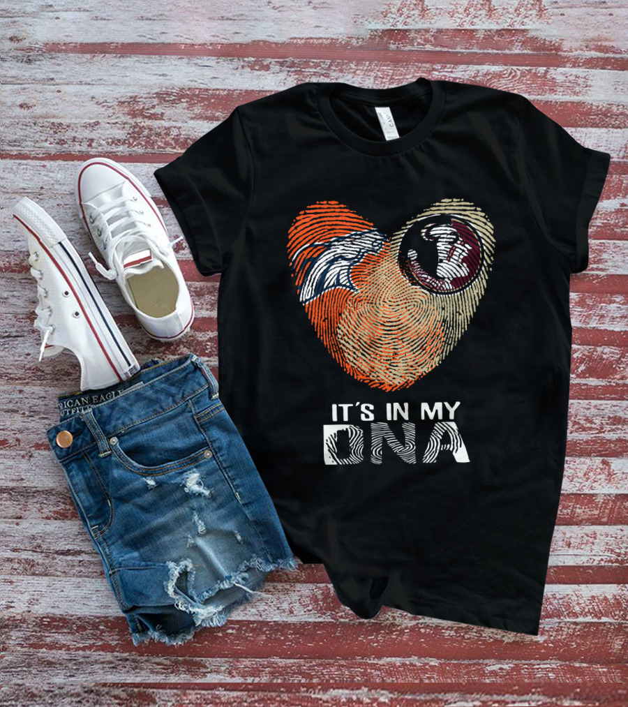 Broncos Seminoles It's In My DNA Heart Fingerprint T-Shirt