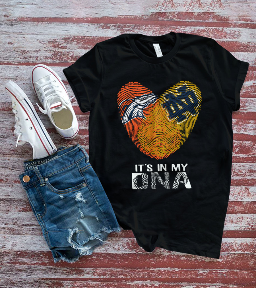Broncos Notre Dame Fingerprint Heart It's In My DNA T-Shirt