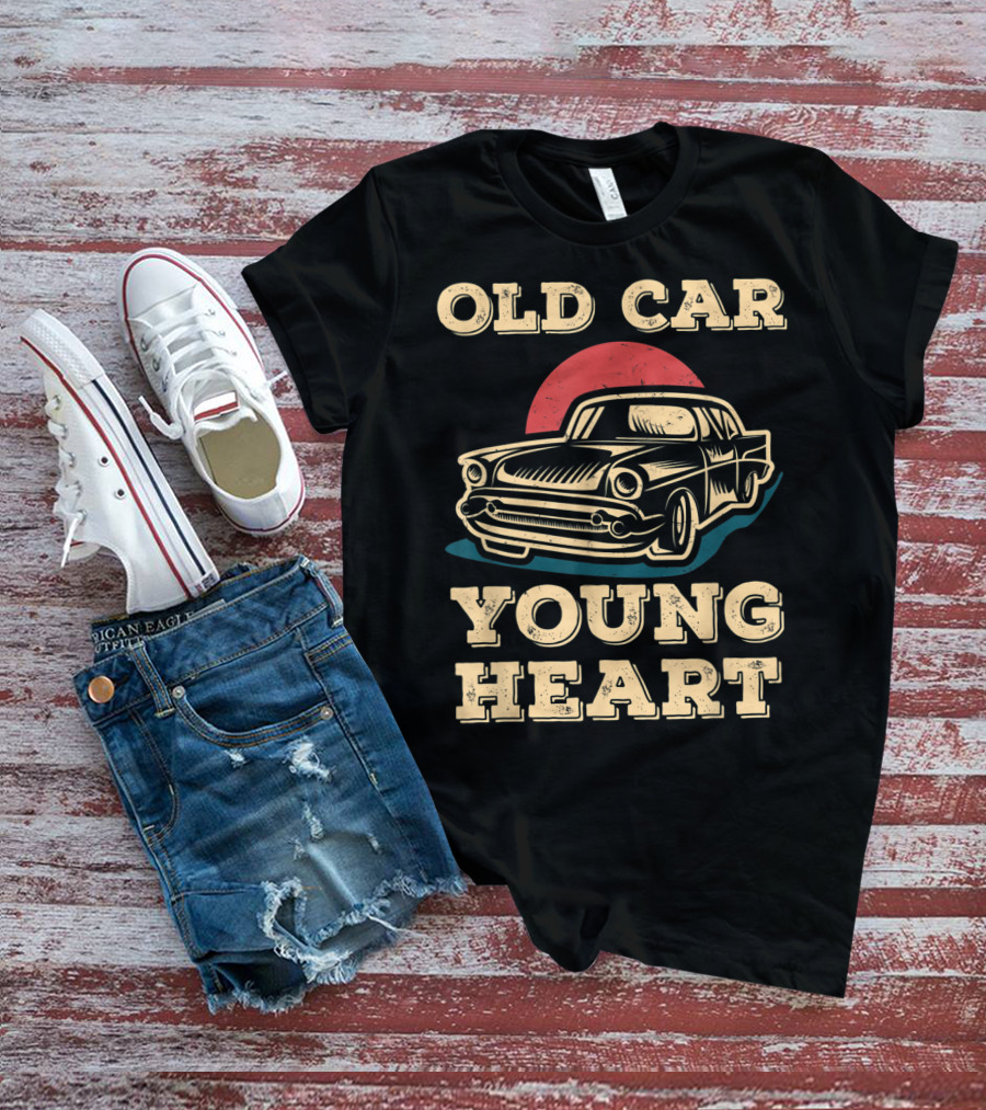 Old Car Young Heart Vintage Style Classic Auto Enthusiast Retro T-Shirt