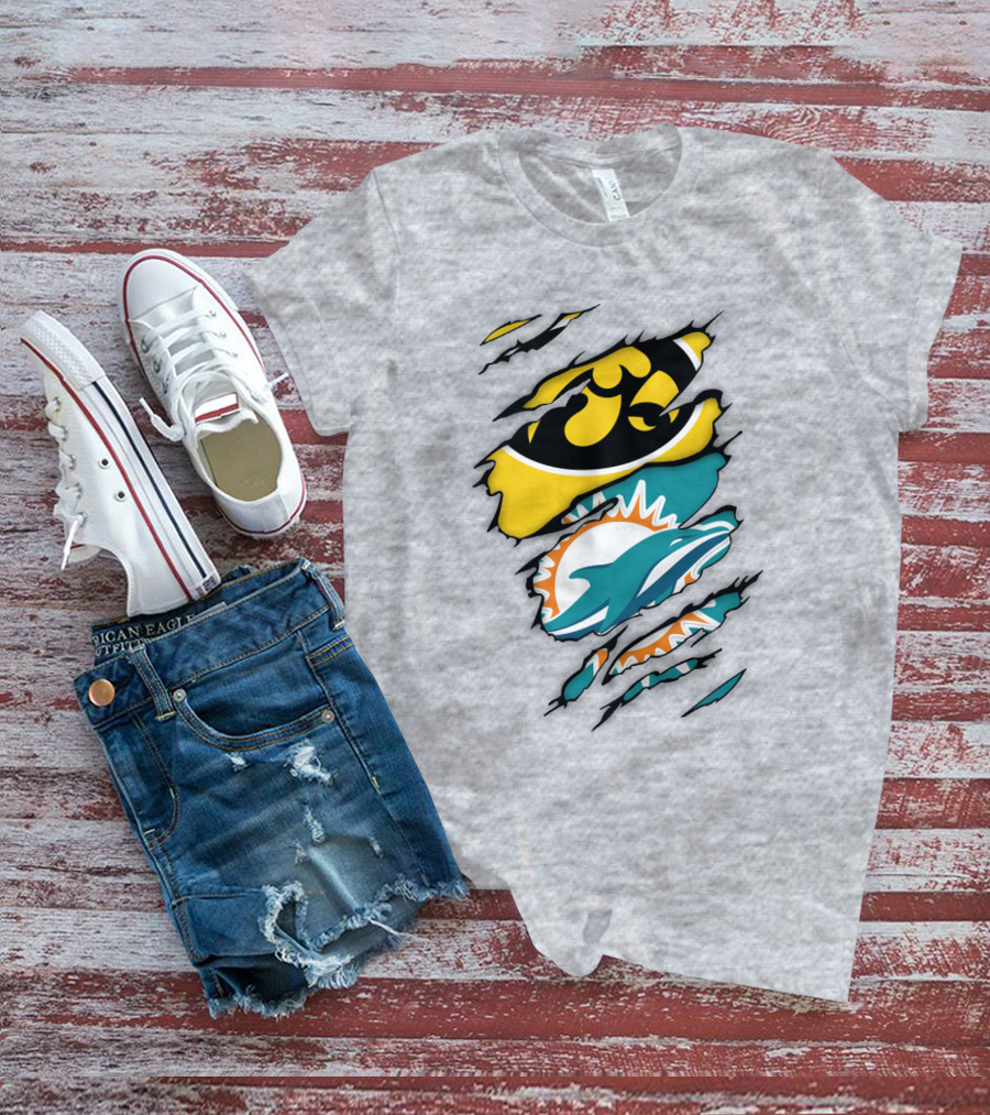 Miami Dolphins Iowa Hawkeyes Logo Mashup T-Shirt