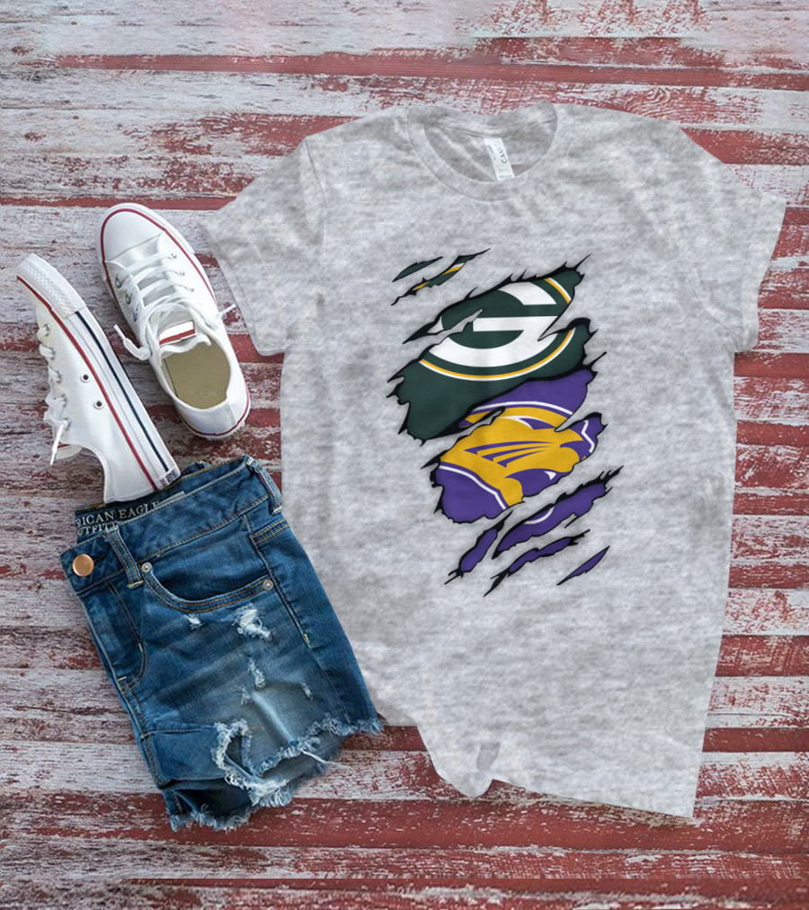 Green Bay Packers And Northern Iowa Panthers Logo Fusion T-Shirt