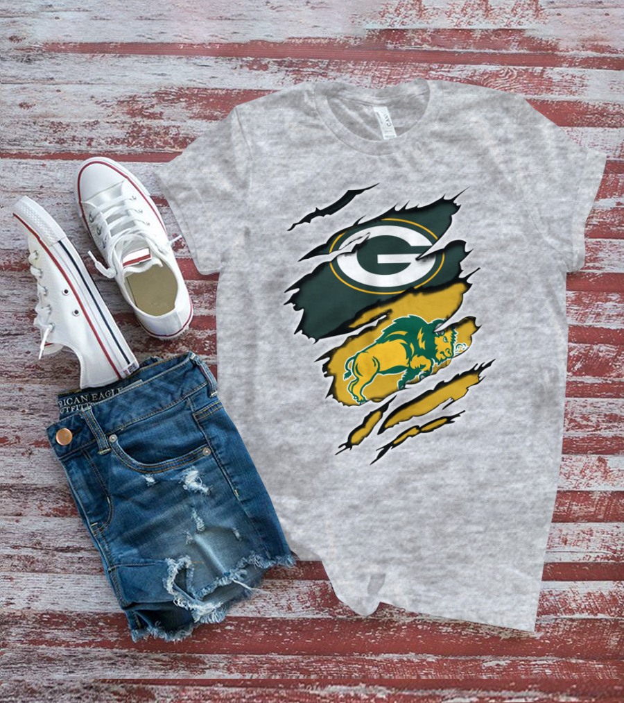 The Packers Green And Gold G Logo With Dakota Bison Ripped Shirt offers a regular fit. Made from 100% ring-spun cotton that is pre-shrunk to help maintain size and shape after washing. Features reinforced construction details for durability. Available in U.S. standard sizes S-5XL to accommodate various body types.