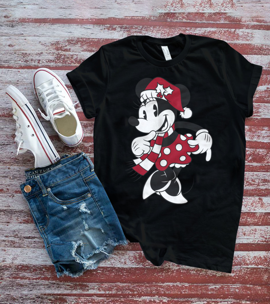 Disney Minnie Mouse Christmas Santa Hat And Scarf T-Shirt