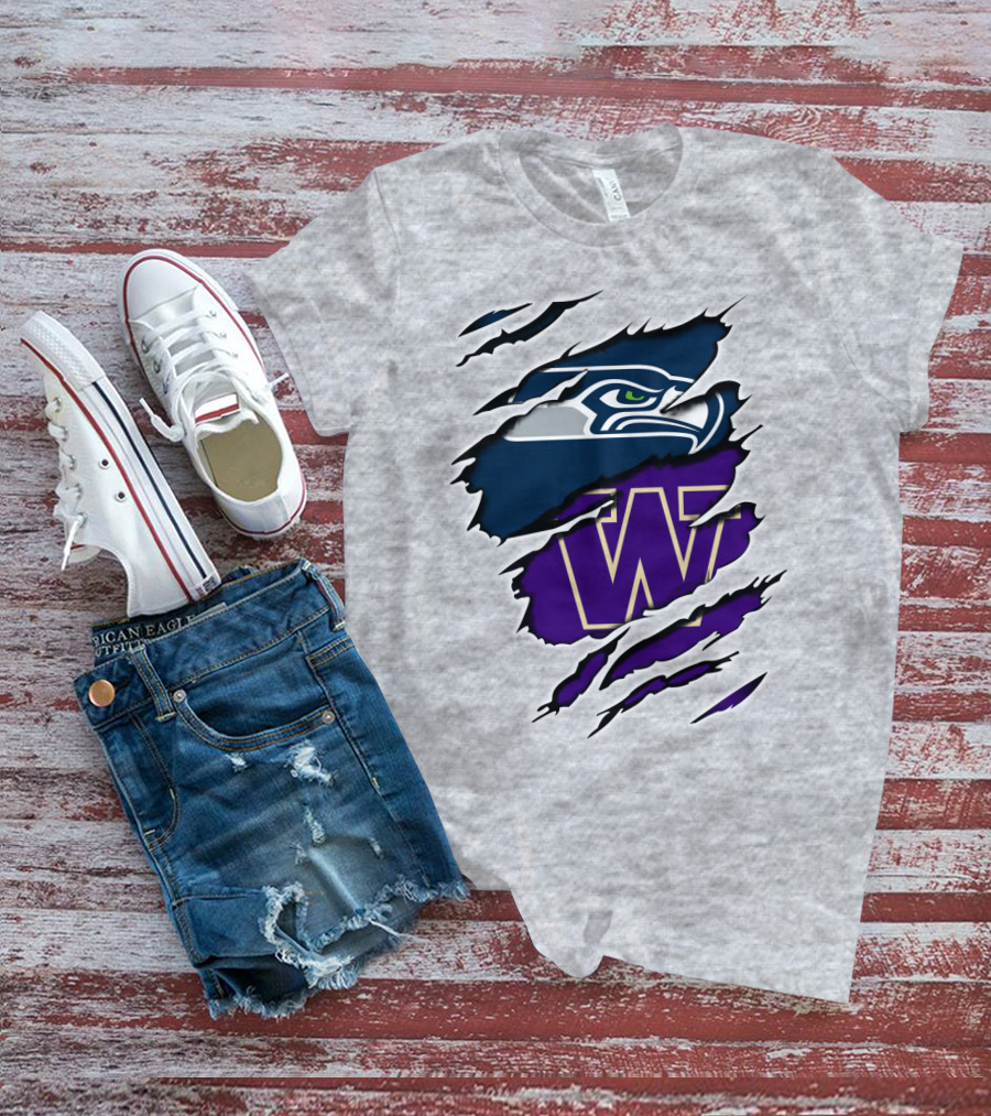 The Seahawks Huskies Team Spirit Logo Claw Marks Shirt offers a regular fit. Made from 100% ring-spun cotton that is pre-shrunk to help maintain size and shape after washing. Features reinforced construction details for durability. Available in U.S. standard sizes S-5XL to accommodate various body types.