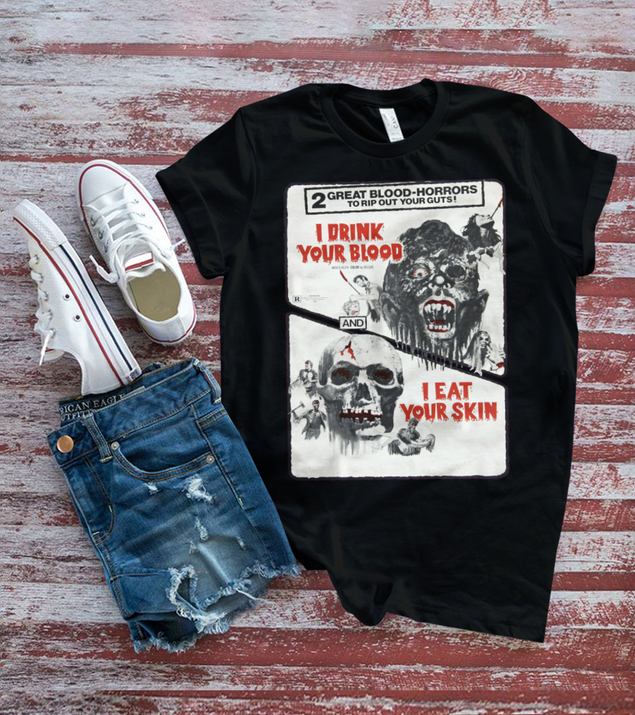 I Drink Your Blood I Eat Your Skin 2 Great Blood-Horrors Classic Halloween Monster T-Shirt