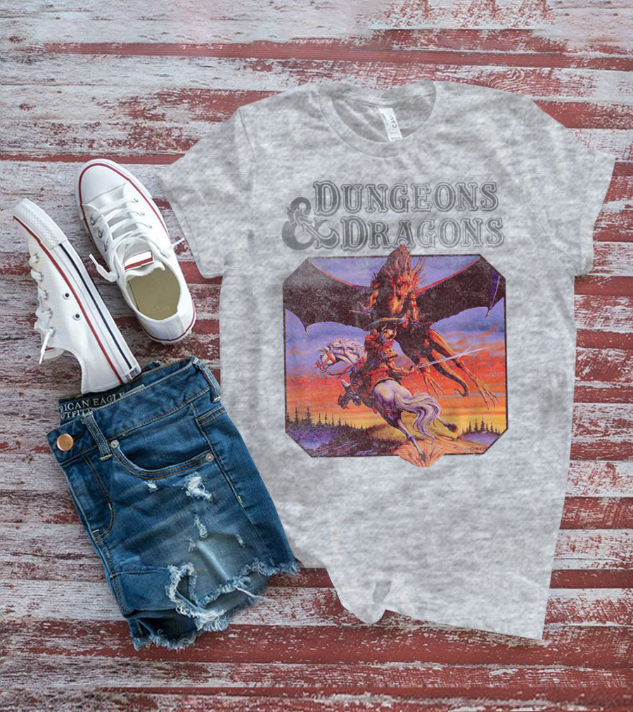 The Dungeons and Dragons Classic Expert Rules Knight with Dragon Shirt offers a regular fit. Made from 100% ring-spun cotton that is pre-shrunk to help maintain size and shape after washing. Features reinforced construction details for durability. Available in U.S. standard sizes S-5XL to accommodate various body types.