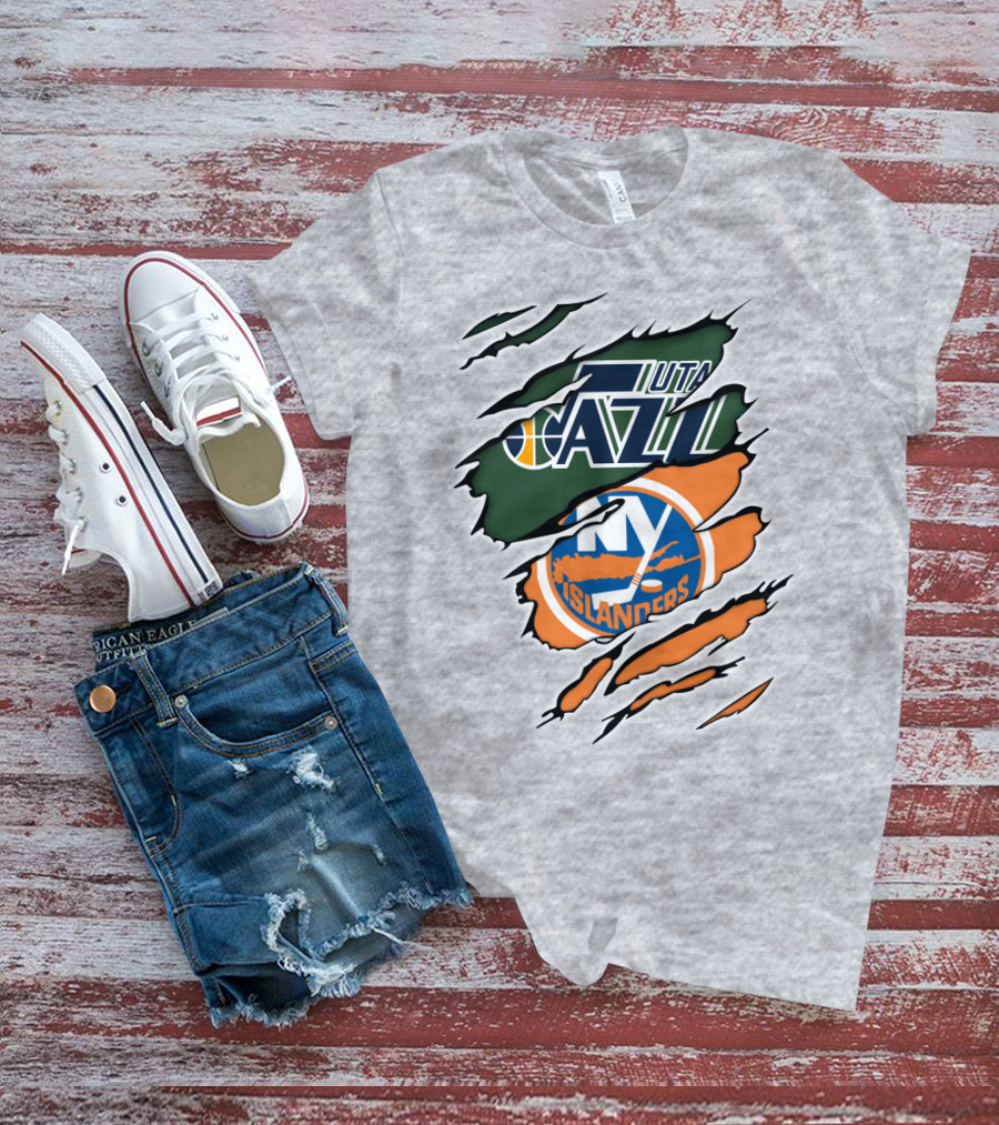 Utah Jazz NY Islanders Team Spirit Collaboration T-Shirt