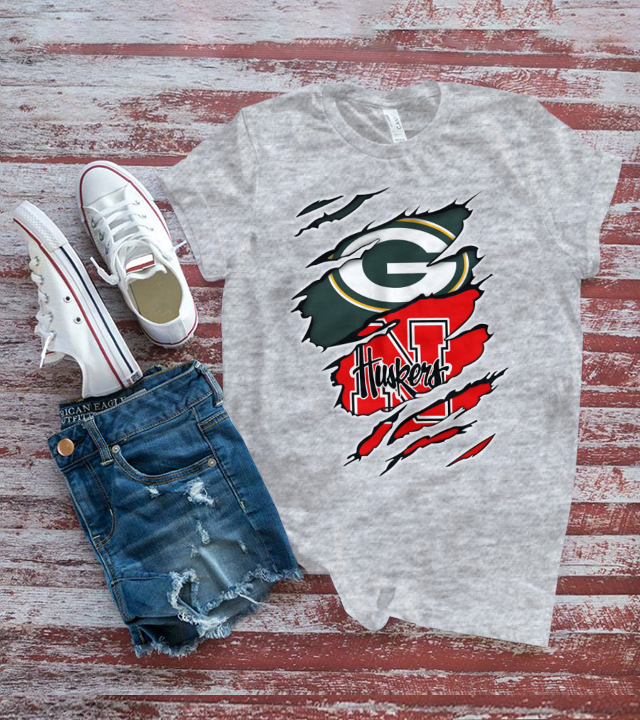 Packers Huskers G Green Bay Logo Nebraska N Huskers Combination T-Shirt