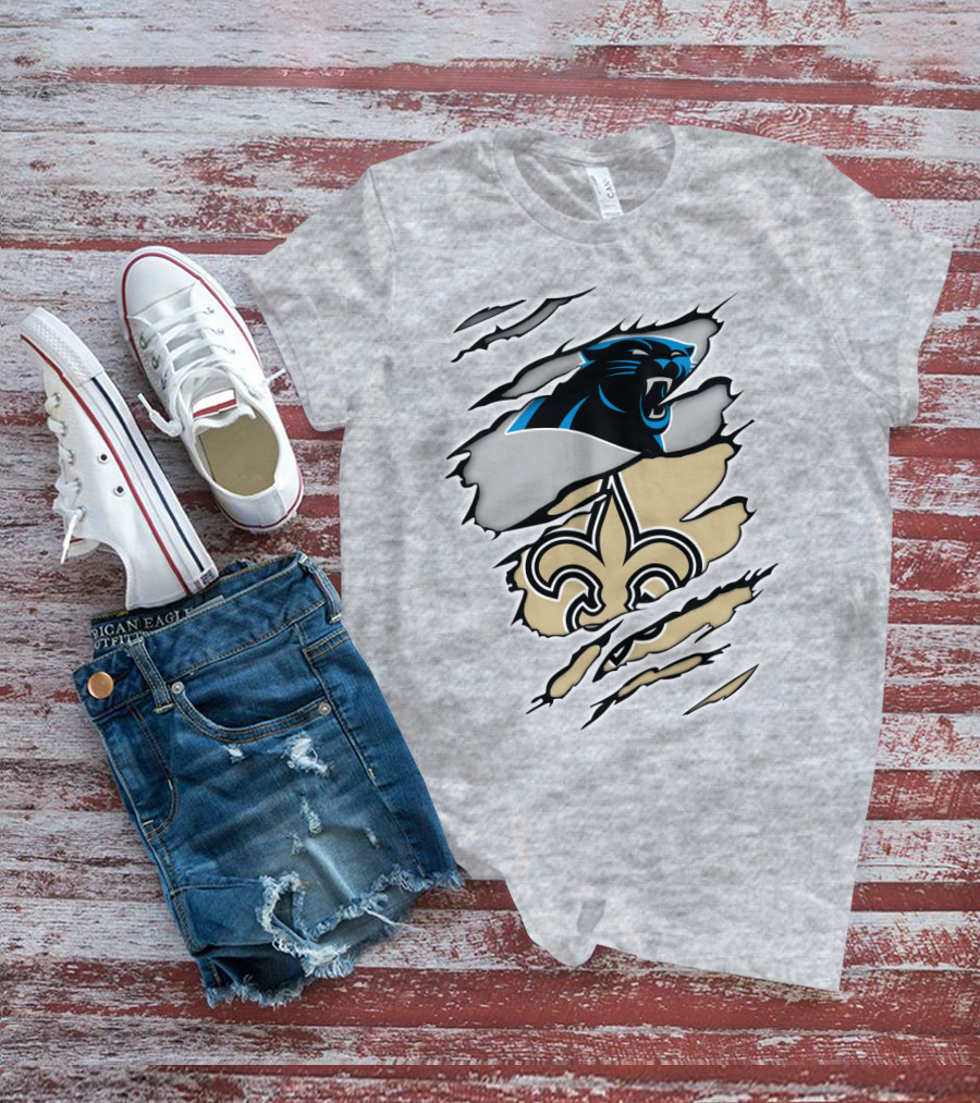 The Panther Saint Split Ripped Design Fleur-de-Lis Panther Emblem Fusion Shirt offers a regular fit. Made from 100% ring-spun cotton that is pre-shrunk to help maintain size and shape after washing. Features reinforced construction details for durability. Available in U.S. standard sizes S-5XL to accommodate various body types.
