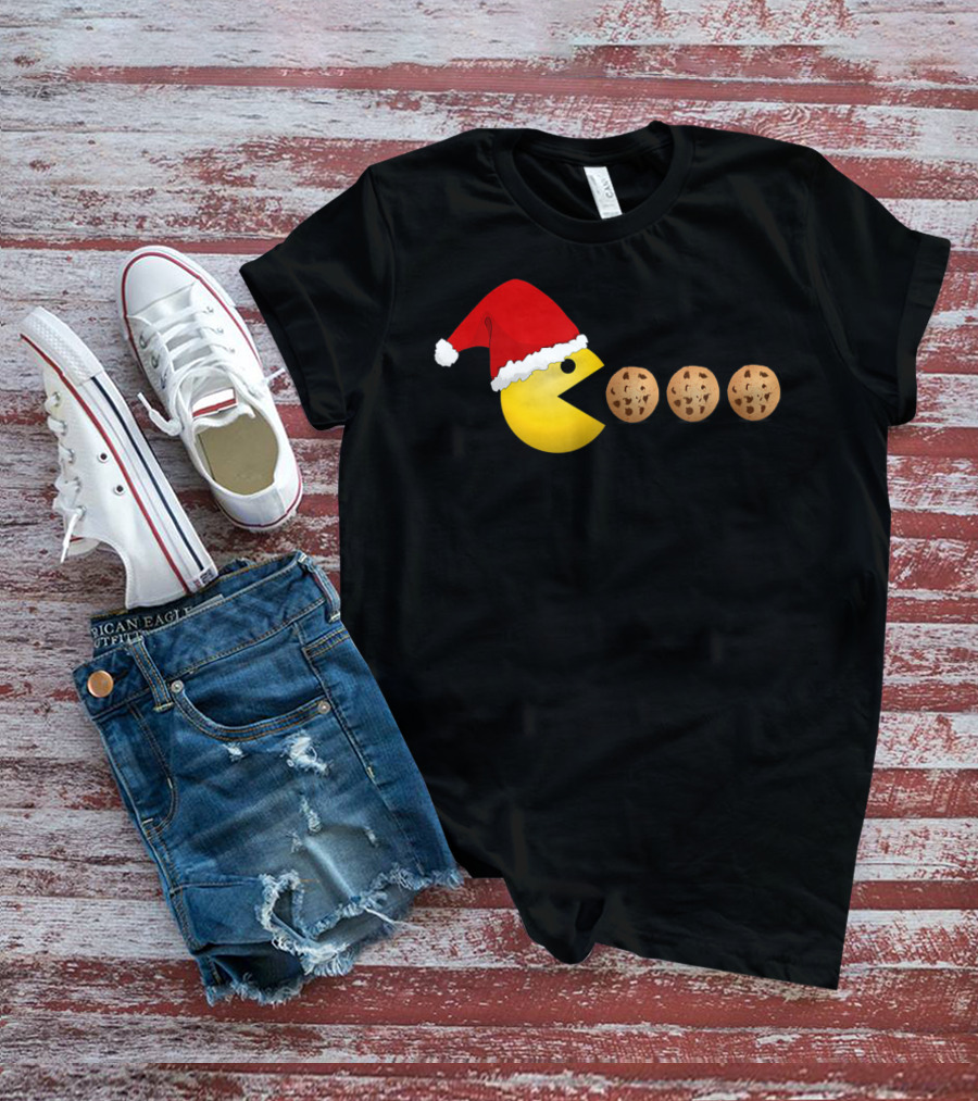 Funny Christmas Santa Pac-Man Cookies Classic Video Game T-Shirt