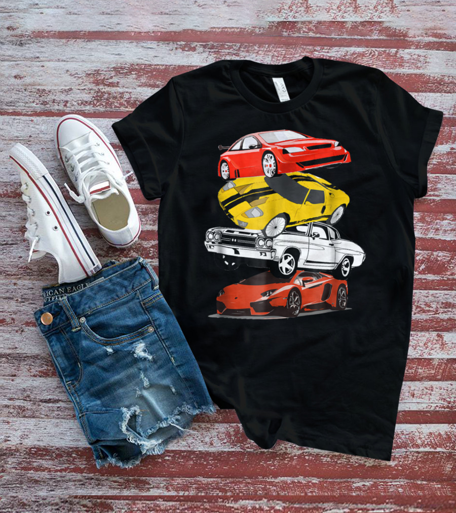 Funny Classic Cars Stacked Red Yellow Black White Racing Cars T-Shirt