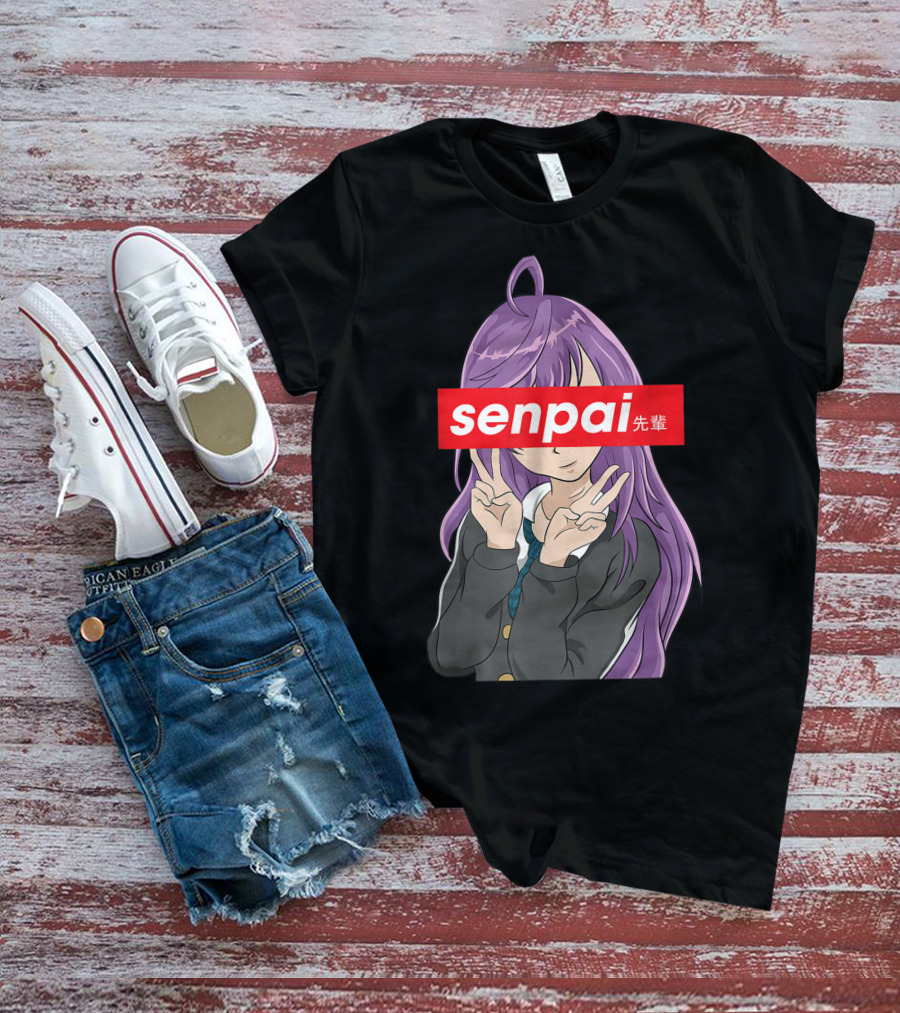 Japanese Anime Girl Senpai Purple Hair Peace Sign T-Shirt