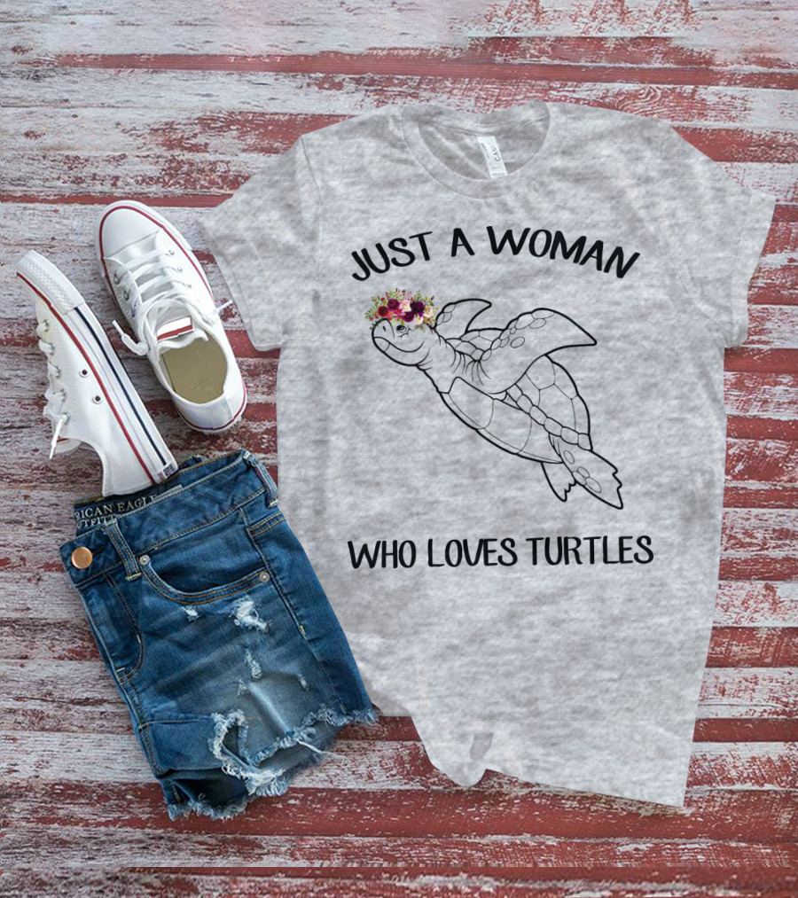 Just A Woman Who Loves Turtles With Floral Crown T-Shirt
