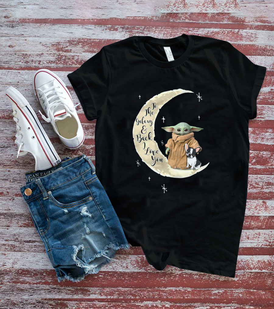 To The Galaxy And Back I Love You Baby Yoda French Bulldog Moon T-Shirt