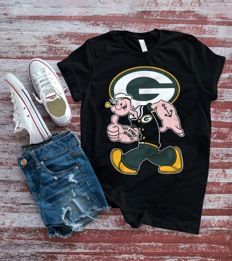 Popeye My Story Begins Green Bay Packers G Logo Anchor Tattoo T-Shirt