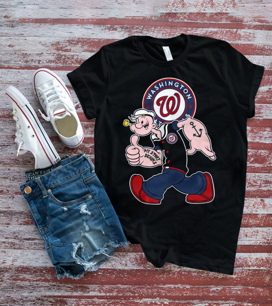 The Washington Nationals Popeye My Story Begins Shirt offers a regular fit. Made from 100% ring-spun cotton that is pre-shrunk to help maintain size and shape after washing. Features reinforced construction details for durability. Available in U.S. standard sizes S-5XL to accommodate various body types.