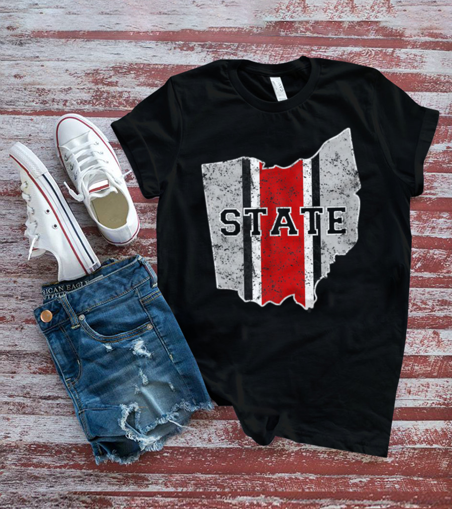 The State Outline with Distressed Ohio Stripe Shirt offers a regular fit. Made from 100% ring-spun cotton that is pre-shrunk to help maintain size and shape after washing. Features reinforced construction details for durability. Available in U.S. standard sizes S-5XL to accommodate various body types.