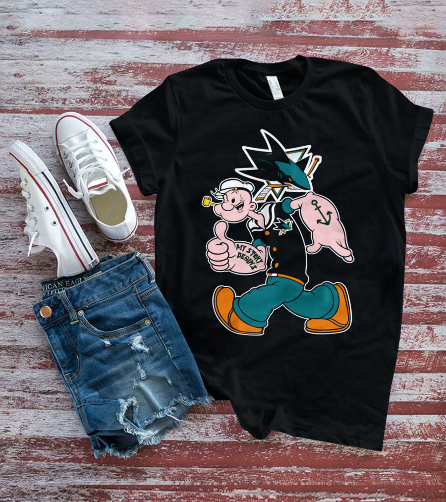 San Jose Sharks Popeye My Story Design Anchor Tattoo T-Shirt