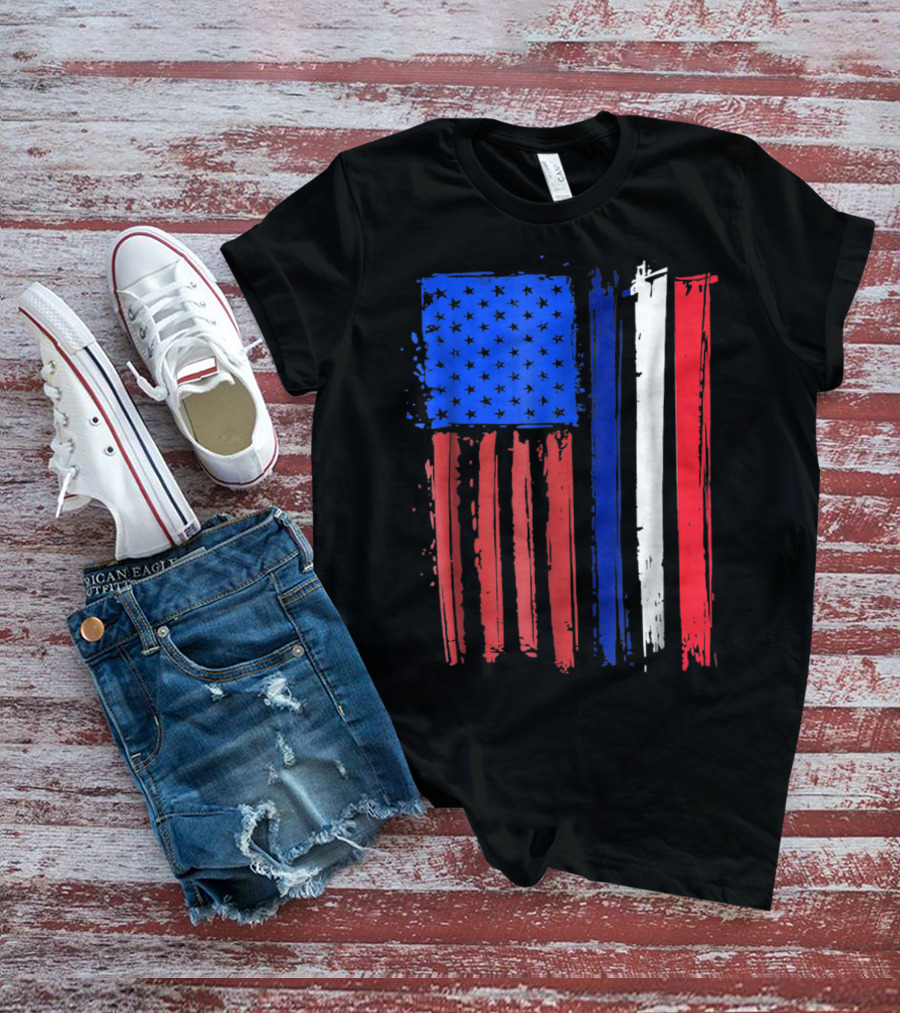Half French American Flag Classic Patriot Stars And Stripes Paint T-Shirt