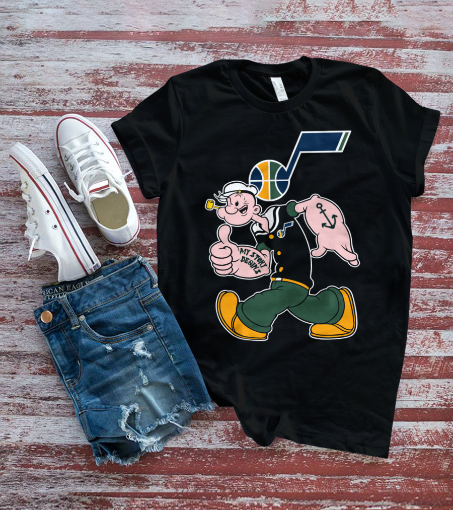 Popeye Walking With Thumb Up And Utah Jazz Basketball T-Shirt