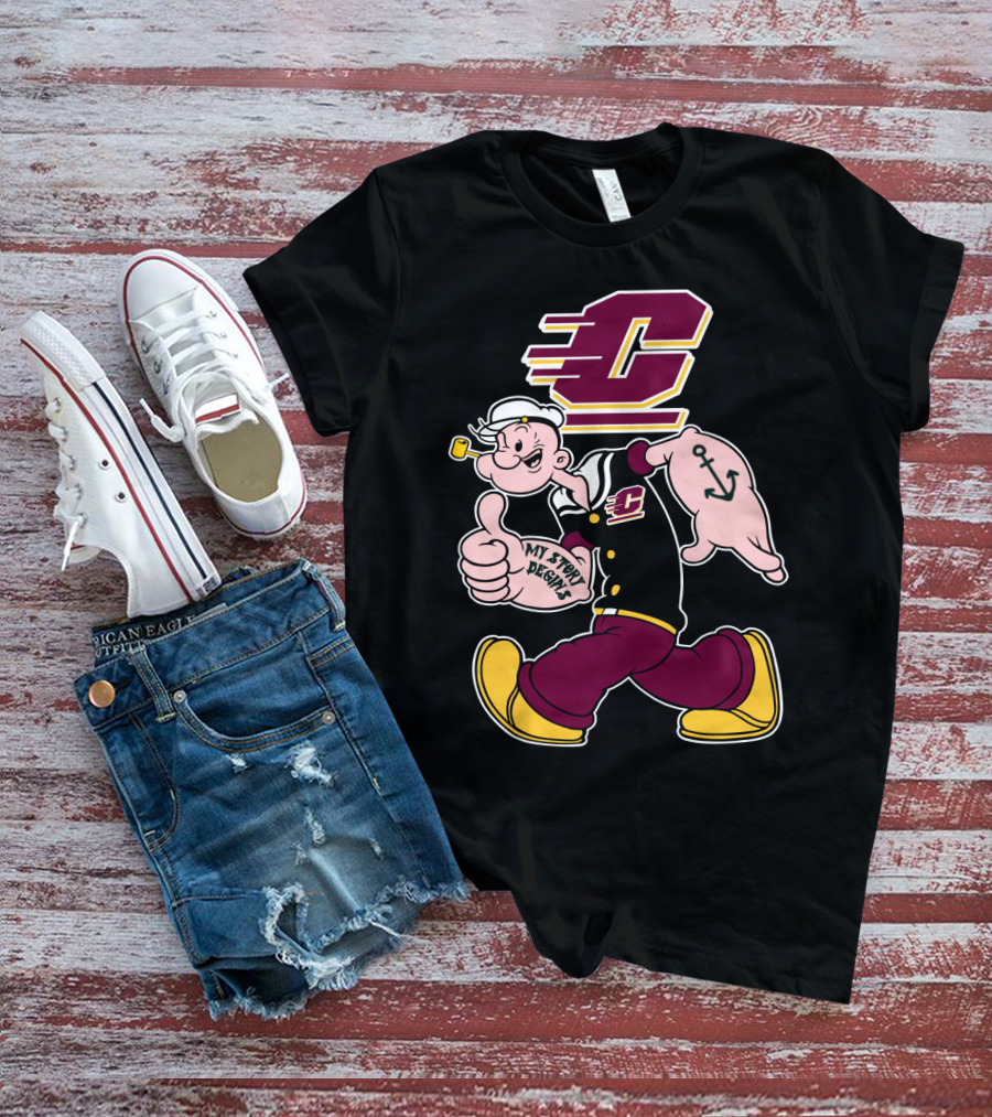 Popeye Thumbs Up My Story Begins Central Michigan Chippewas T-Shirt