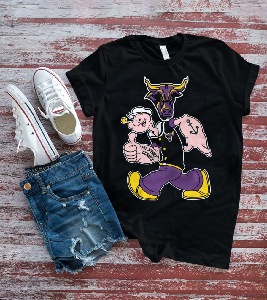 The Mankato Mavericks My Story Begins Anchor Popeye Bull Shirt offers a regular fit. Made from 100% ring-spun cotton that is pre-shrunk to help maintain size and shape after washing. Features reinforced construction details for durability. Available in U.S. standard sizes S-5XL to accommodate various body types.