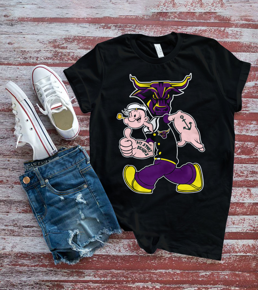 Mavericks My Story Begins Minnesota State 338 Popeye Sailor Tattoo Bull T-Shirt