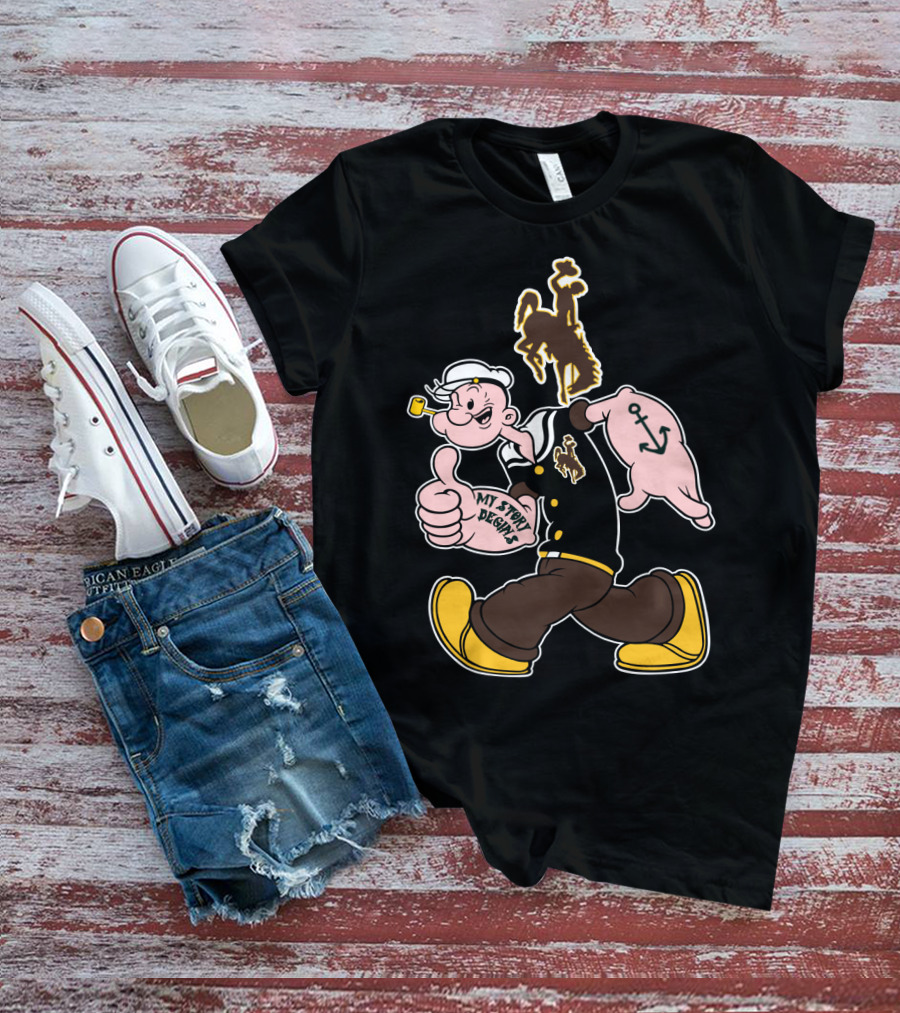 The Wyoming Cowboys My Story Designs Popeye Anchor Shirt offers a regular fit. Made from 100% ring-spun cotton that is pre-shrunk to help maintain size and shape after washing. Features reinforced construction details for durability. Available in U.S. standard sizes S-5XL to accommodate various body types.