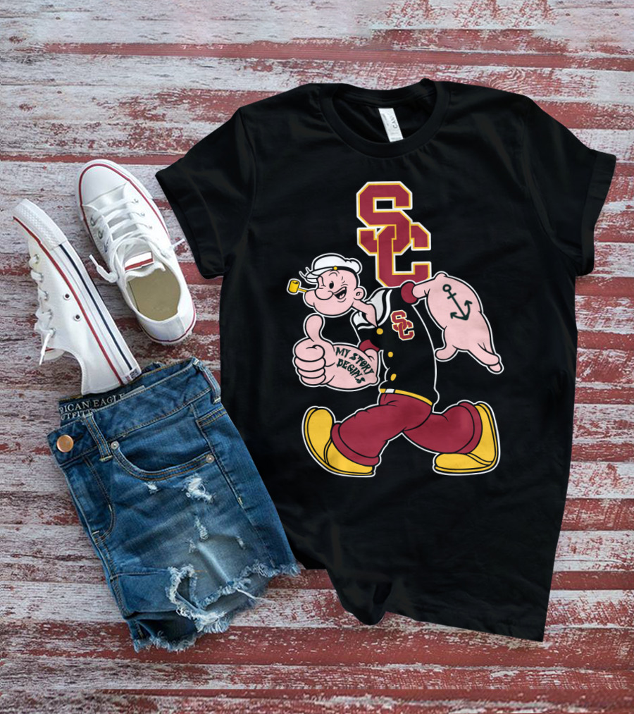 Usc Trojans Sc Logo With Sailor Cartoon And Anchor Tattoo T-Shirt